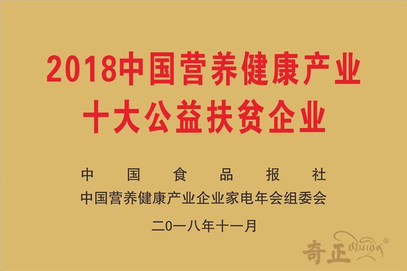 中國(guó)營(yíng)養(yǎng)健康產(chǎn)業(yè)十大公益扶貧企業(yè)(2018.11)
